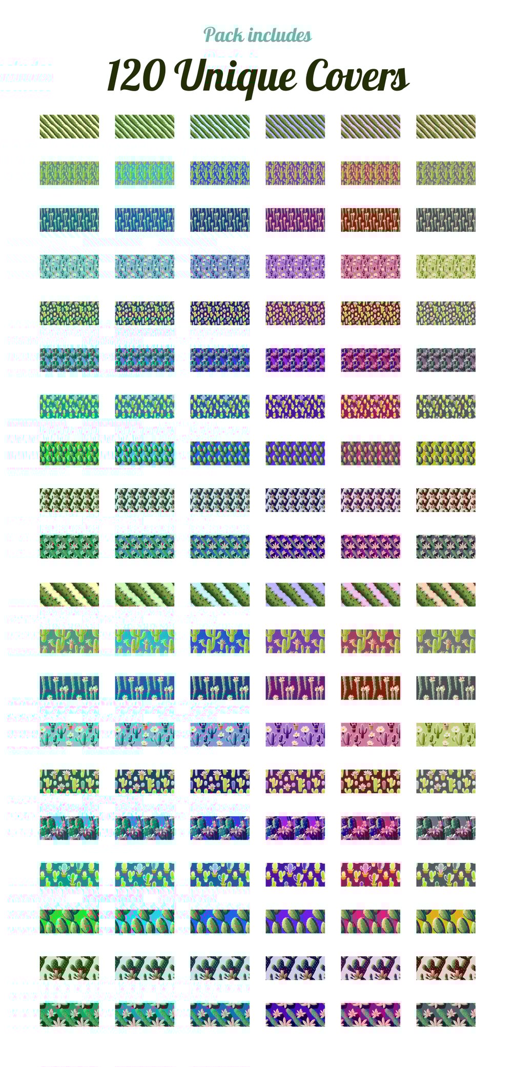 Brighten your Notion workspace with this pack of 120 aesthetic cacti-themed cover images!
