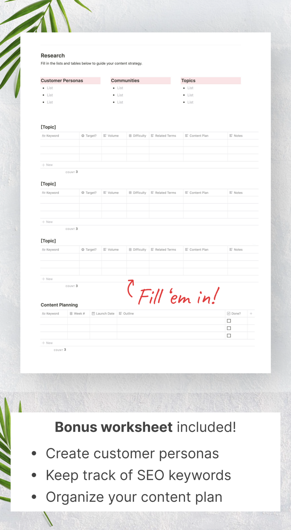 If you're a Notion user, duplicate the Notion template and start checking off your progress. At the bottom of the checklist are lists and tables for you to fill in with your market research.